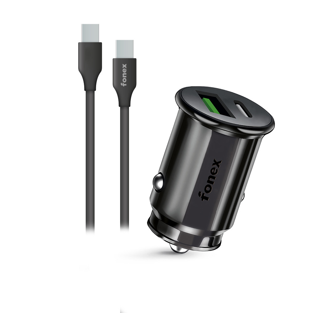 Fonex caricatore auto 36W con 2 porte USB e cavo Type-C | Nero
