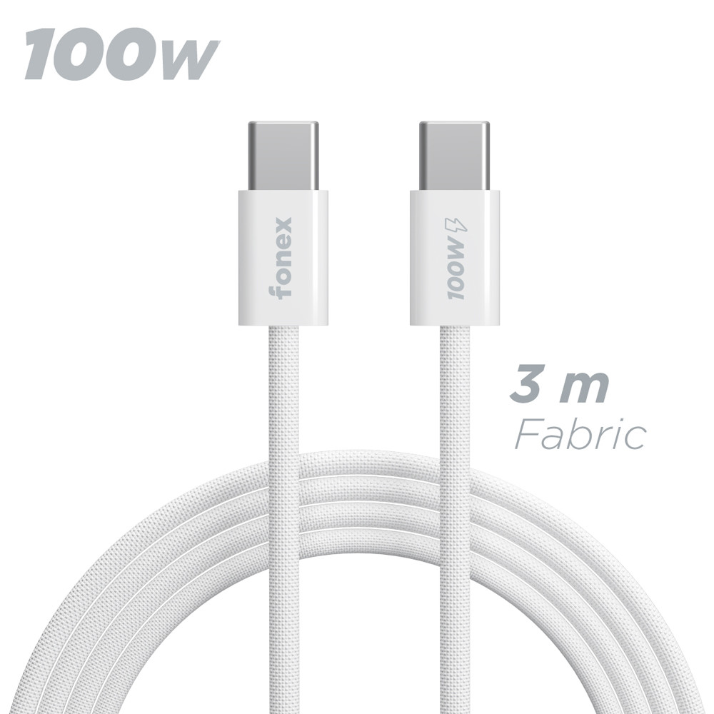 Fonex cavo carica e dati 100W in tessuto ultraresistente Type-C to Type-C | 3 m | Bianco