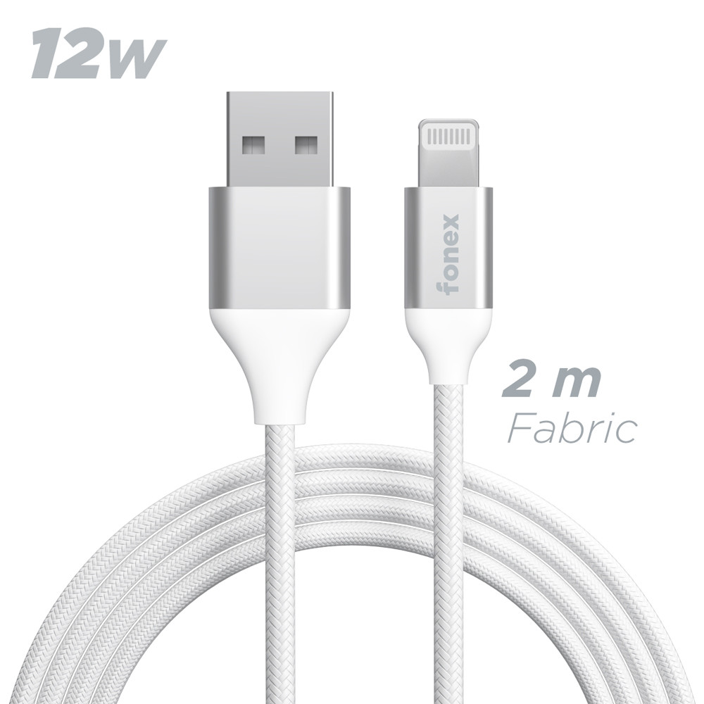 Fonex cavo carica e dati 12W in tessuto ultraresistente USB to Lightning | 2 m | Bianco