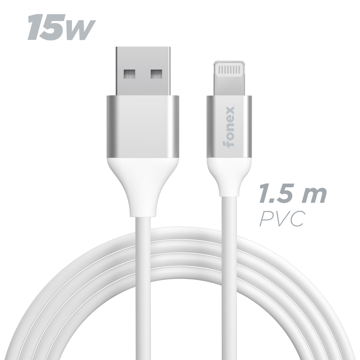 Fonex cavo carica e dati 15W USB to Lightning | 1.5 m | Bianco