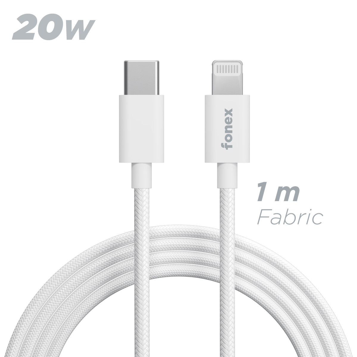 Fonex cavo carica e dati 20W in tessuto ultraresistente Type-C to Lightning | 1 m | Bianco