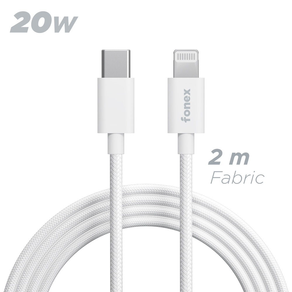 Fonex cavo carica e dati 20W in tessuto ultraresistente Type-C to Lightning | 2 m | Bianco