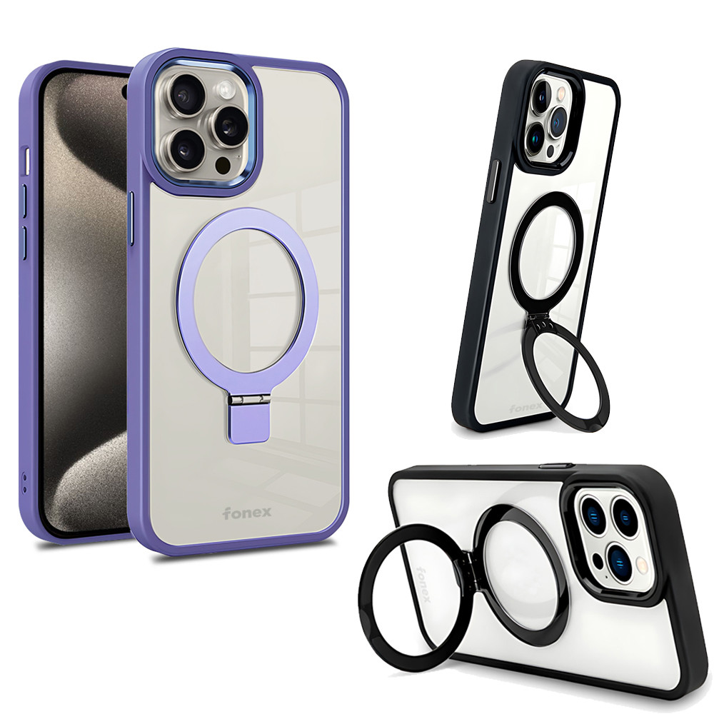 Fonex cover Mag Stand con magnete e supporto per Apple iPhone 15 Pro Max | Bordo Viola