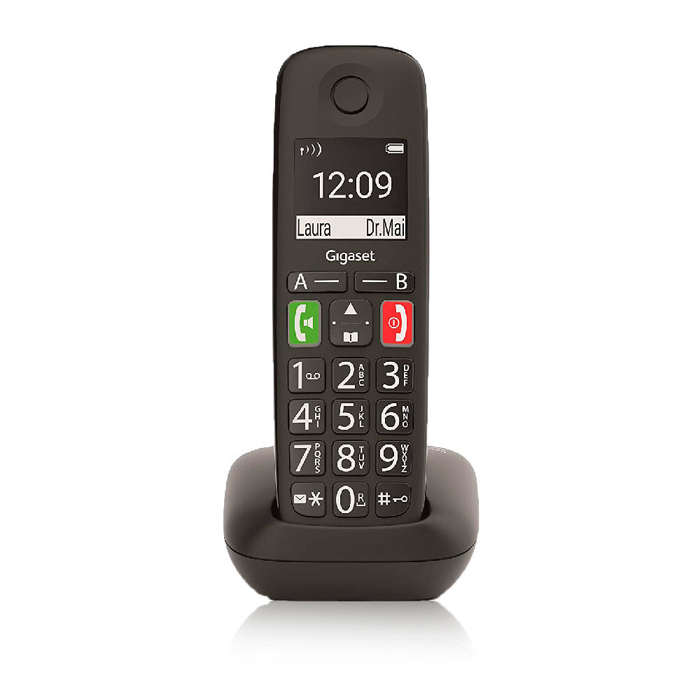 Telefono cordless Gigaset semplice e affidabile, con tasti grandi, ben illuminati e distanziati per facilitare la selezione. Display ampio, con caratteri e numeri grossi, illuminato con testi a contrasto per migliorare la leggibilità anche al buio. Un'altra caratteristica utile è l'audio amplificato e brillante: è possibile impostare 5 livelli di volume e utilizzare anche la funzione extra volume. Il dispositivo è anche compatibile con apparecchi acustici.
