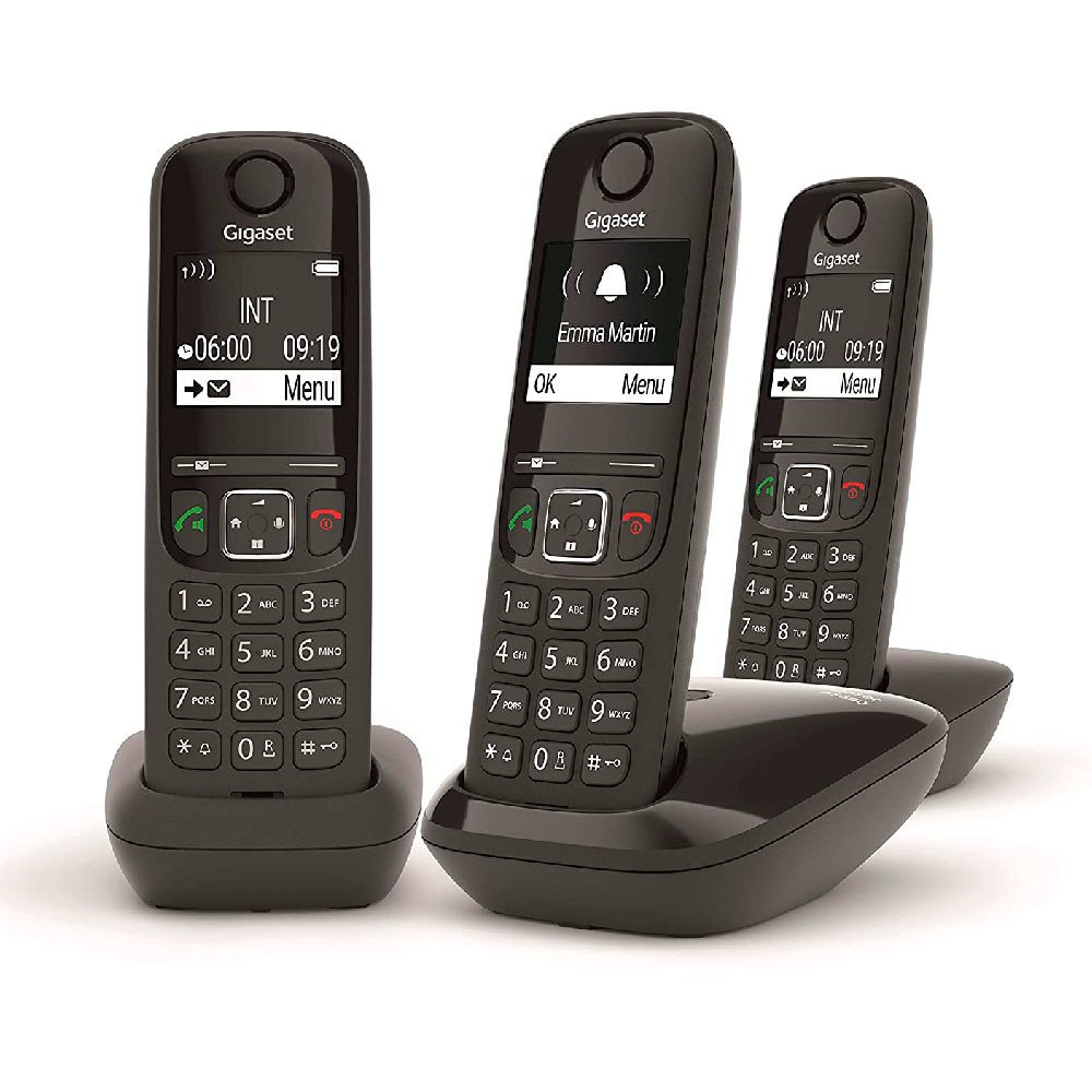 Telefono cordless trio Gigaset ergonomico e affidabile, con tasti ben distanziati e illuminati per facilitare la composizione di un numero, e display con testi a contrasto per migliorare la leggibilità anche al buio. Il valore aggiunto al dispositivo è la qualità dell'audio, sia normalmente che utilizzando il vivavoce. È anche compatibile con apparecchi acustici.