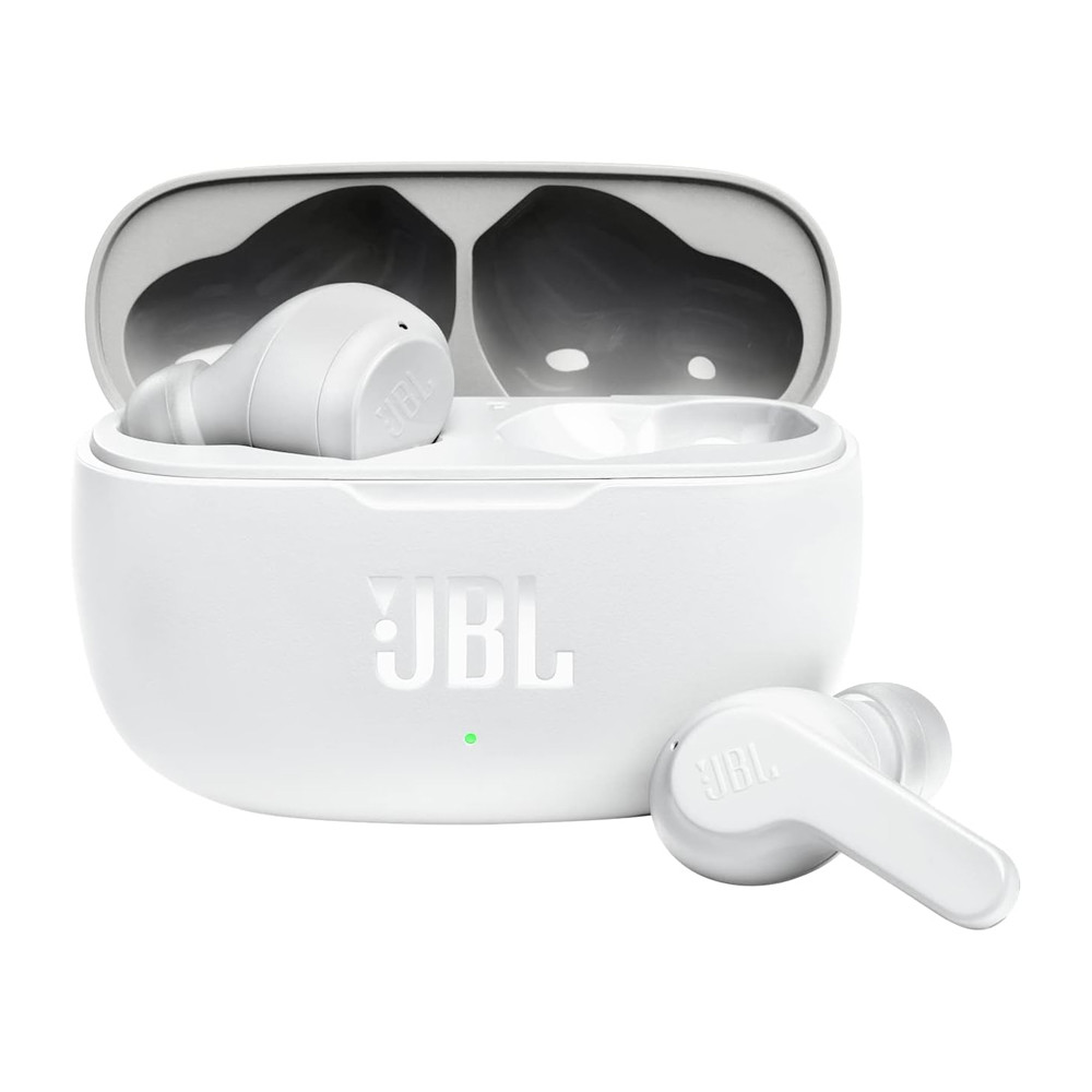 Auricolari in-ear true wireless JBL Wave 200 TWS; driver 8 mm con JBL Deep Bass Sound; Bluetooth; controlli touch; microfoni integrati; uso mono/stereo; custodia di ricarica USB-C; ear tips S/M/L; compatibili Android/iOS.